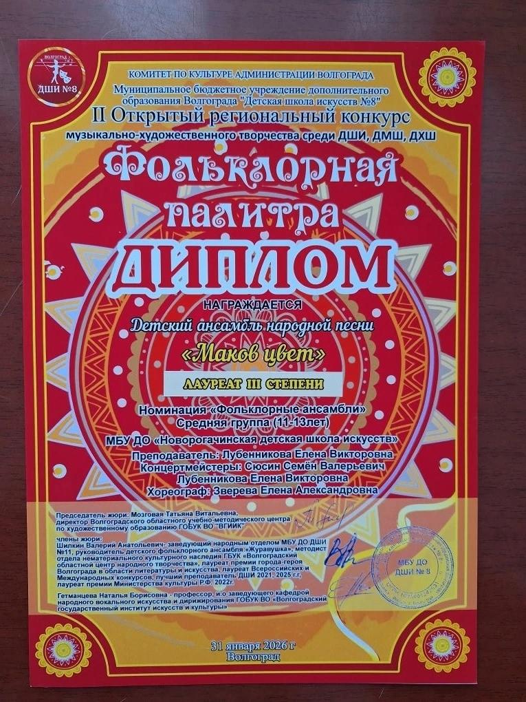Детский ансамбль русской песни «Маков цвет» - лауреат III степени.